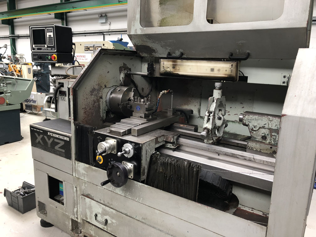 Swing over bed 350mm. Distance between centres 1000mm. Spindle speeds 25 - 3000 rpm. Swing Over Cross Slide 194mm, Spindle bore 54mm. Spindle motor 7.5 HP. 3 point steady. Fitted with 250mm dia. 3 jaw chuck. Quick change toolpost.